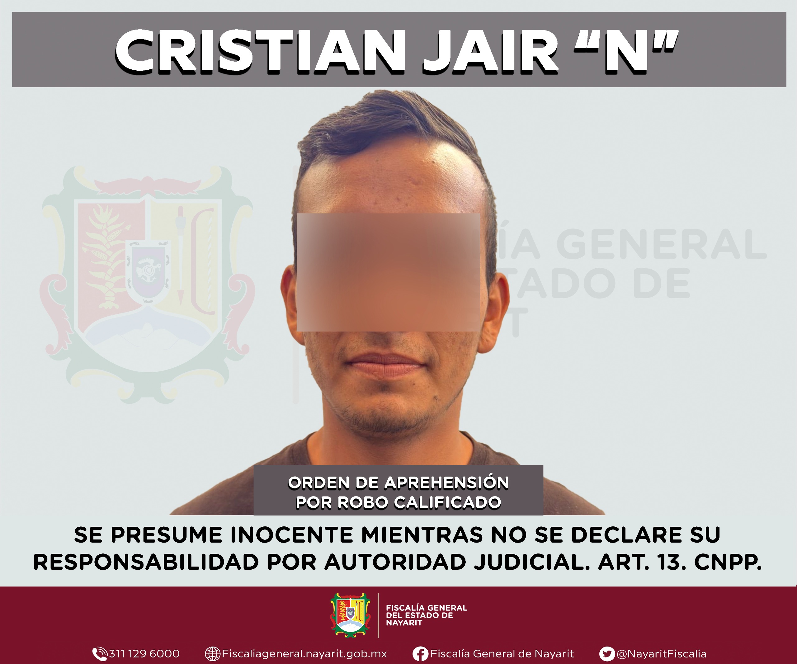 Elementos de la Agencia de Investigación Criminal de Nayarit ejecutaron dos órdenes de aprehensión en la ciudad de Tepic contra Cristian Jair “N”, ambas por su presumible participación en hechos que la ley señala como delito de robo calificado, cometido en agravio de una persona de sexo masculino cuya identidad es reservada para salvaguardar su privacidad e integridad.