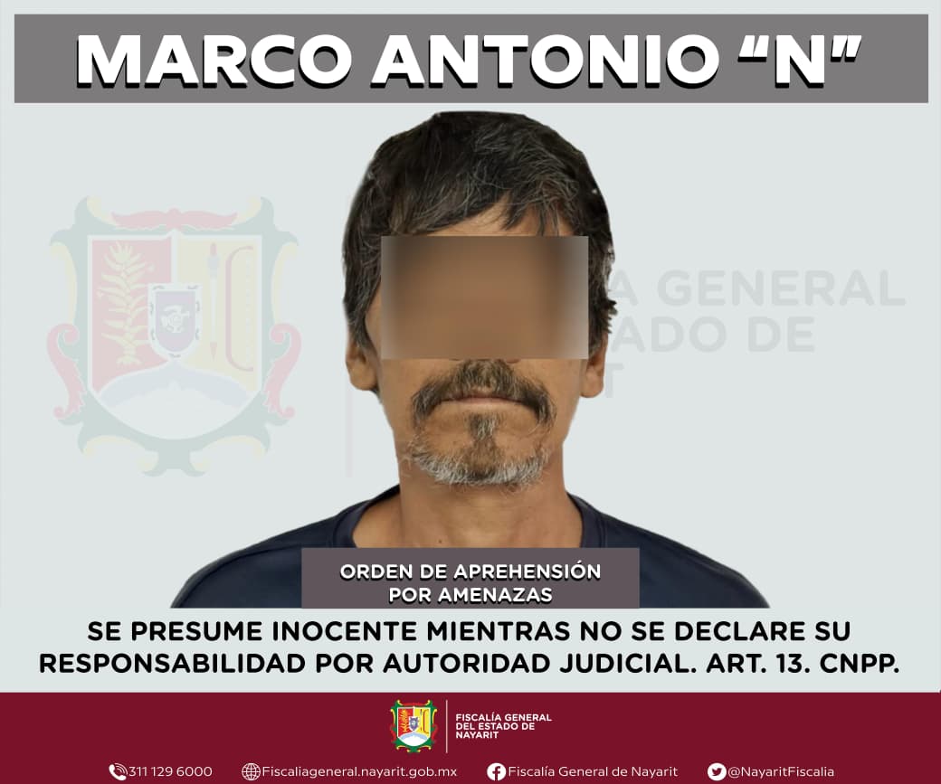 Elementos de la Agencia de Investigación Criminal de Nayarit ejecutaron una orden de aprehensión en la ciudad de Tepic contra Marco Antonio “N”, por su presumible participación en hechos que para la ley configuran el delito de amenazas, cometido en agravio de una persona cuya identidad se reserva para salvaguardar su privacidad e integridad.