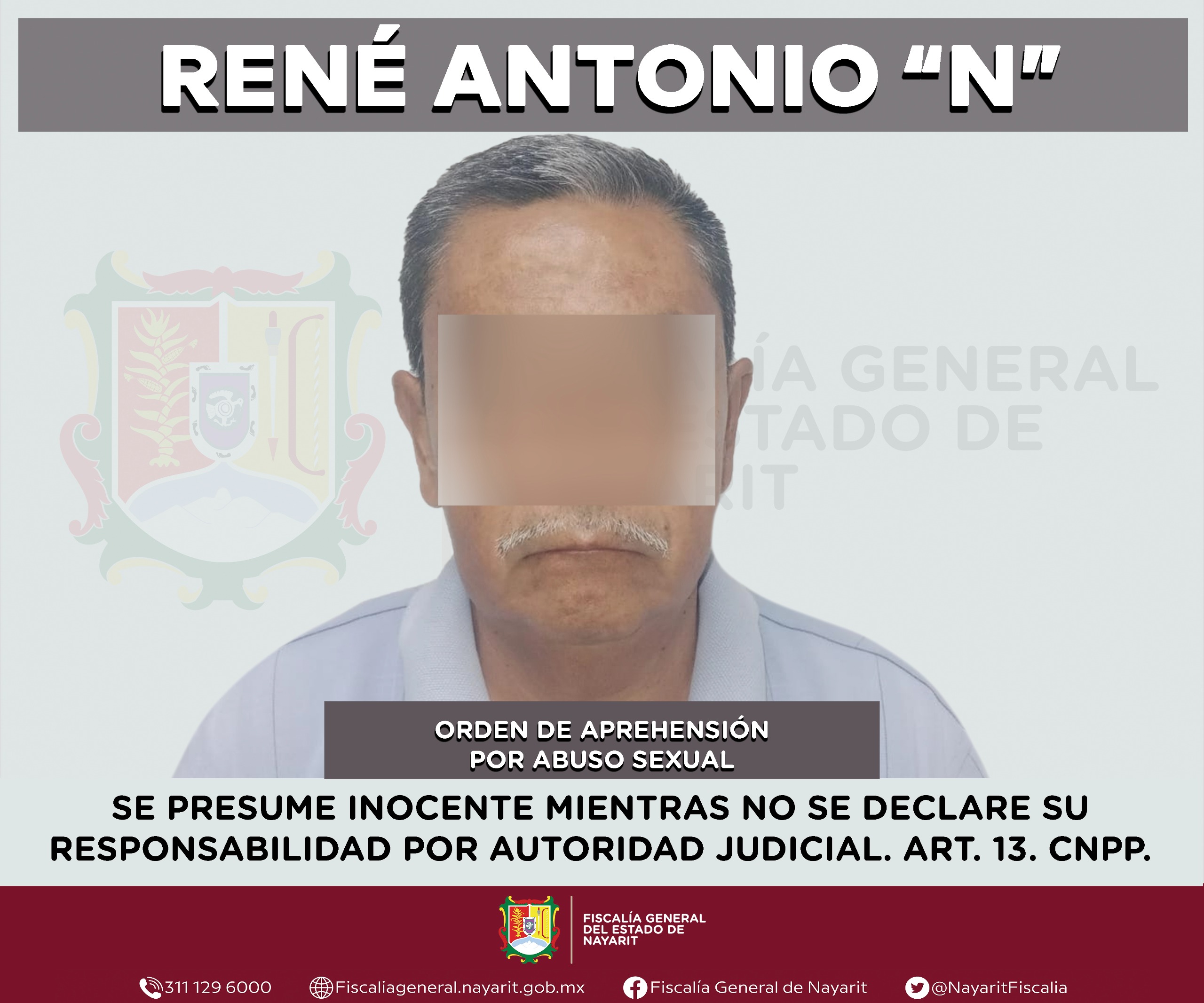Elementos de la Agencia de Investigación Criminal de Nayarit ejecutaron una orden de aprehensión en la localidad San Juan de Abajo, municipio de Bahía de Banderas contra René Antonio “N”, por su presumible participación en hechos que la ley considera como delito de abuso sexual, cometido en agravio de una menor de edad cuya identidad es reservada para salvaguardar su privacidad.