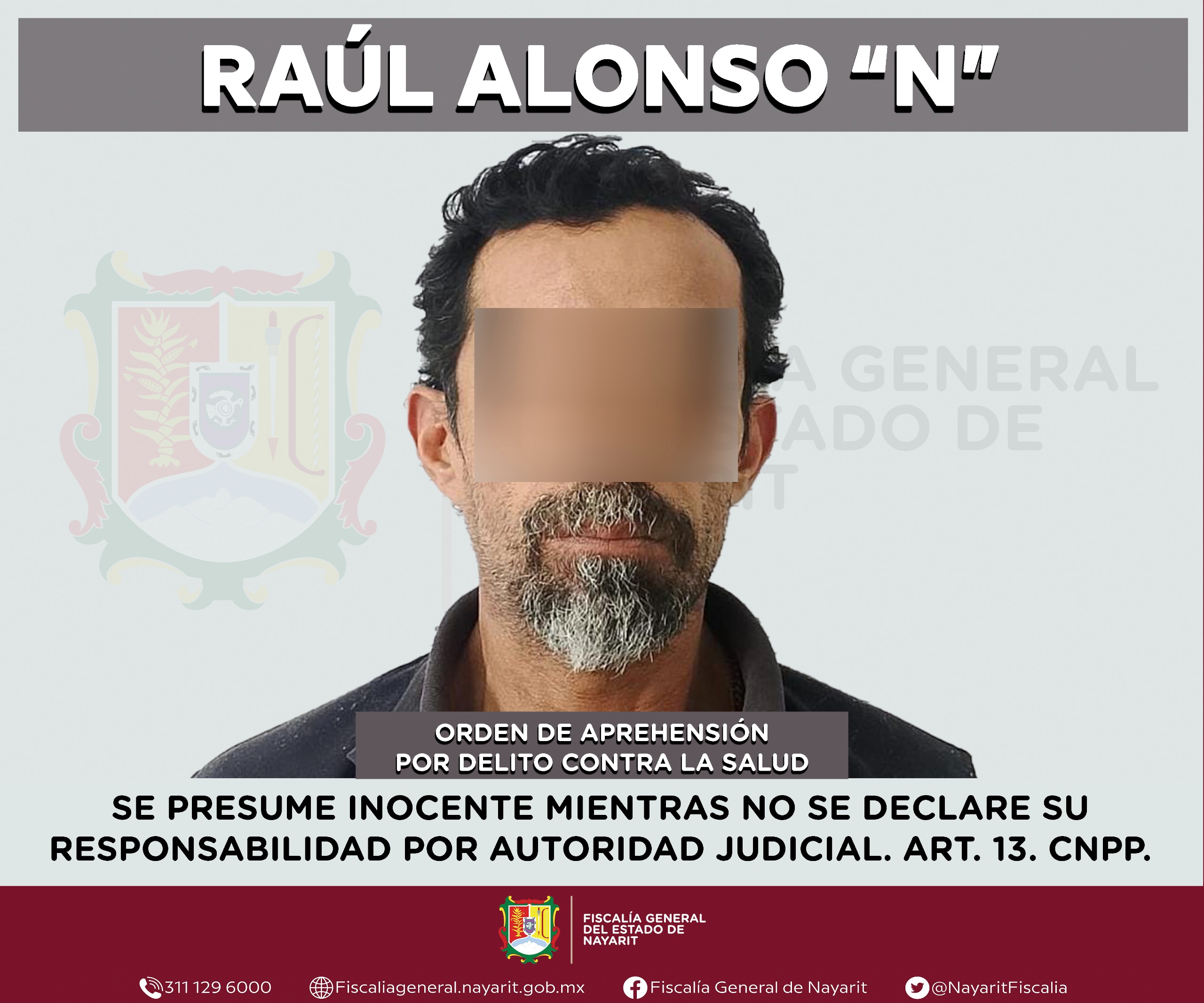 La Fiscalía General de Nayarit informa que a través de la Agencia de Investigación Criminal ejecutó una orden de aprehensión en la ciudad de Tepic contra Raúl Alonso “N”, por su presumible participación en hechos que para la ley configuran el delito contra la salud en su modalidad de narcomenudeo -en su hipótesis de posesión de psicotrópicos-, en agravio de la sociedad.