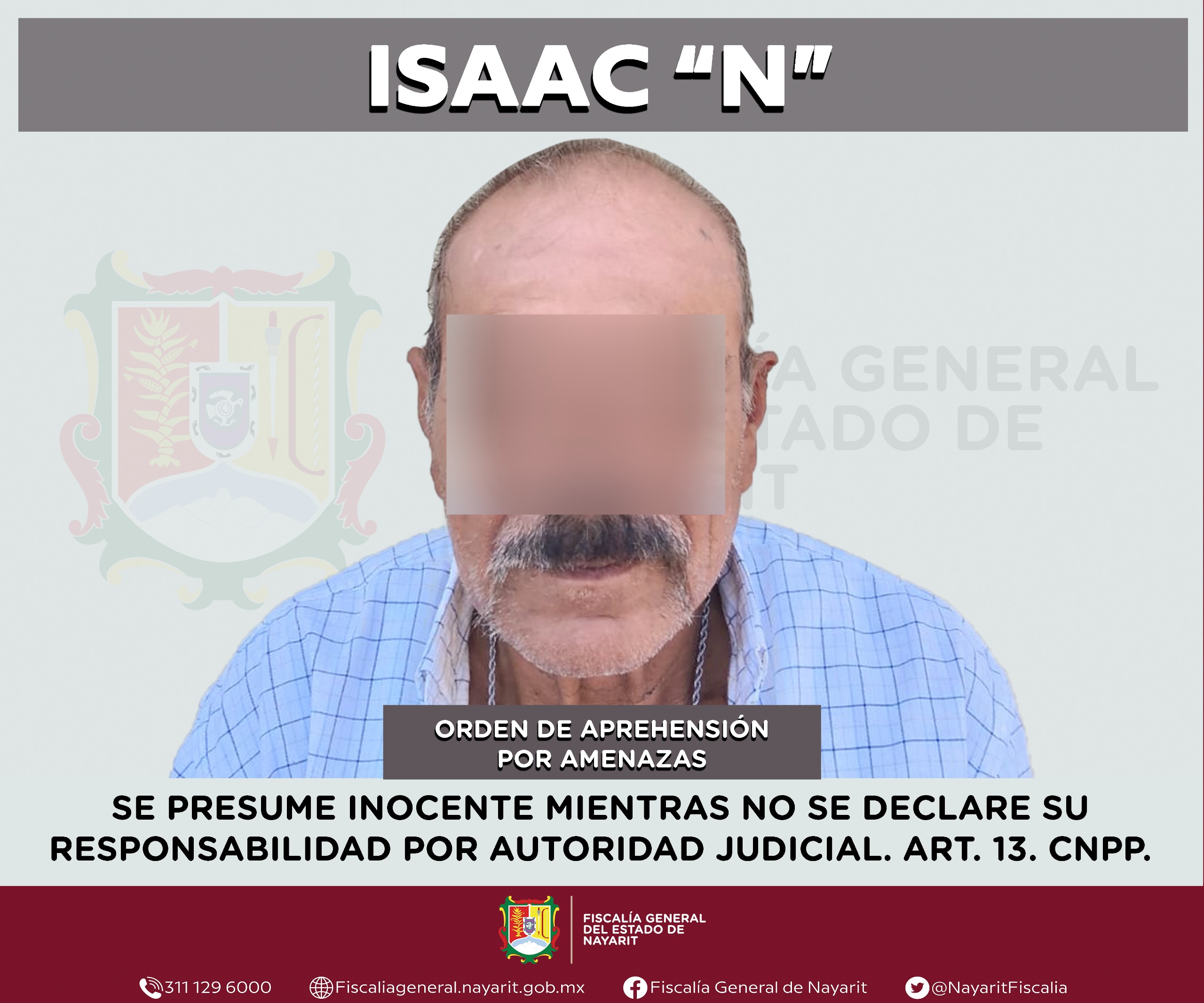 Elementos de la Agencia de Investigación Criminal de Nayarit ejecutaron una orden de aprehensión en la localidad El Jicote, municipio de Tepic contra Isaac “N”, por su presunta participación en hechos que la ley tipifica como delito de amenazas, cometido contra una mujer cuya identidad se reserva para salvaguardar su privacidad e integridad.