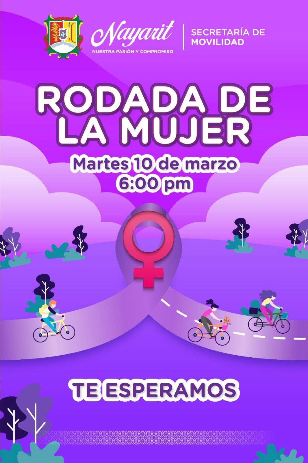 El Gobierno del Estado de Nayarit, a través de la Secretaría de Movilidad, invita hoy martes a participar en la Rodada de la Mujer, que partirá desde las instalaciones de la Secretaría a las 6:00 de la tarde.