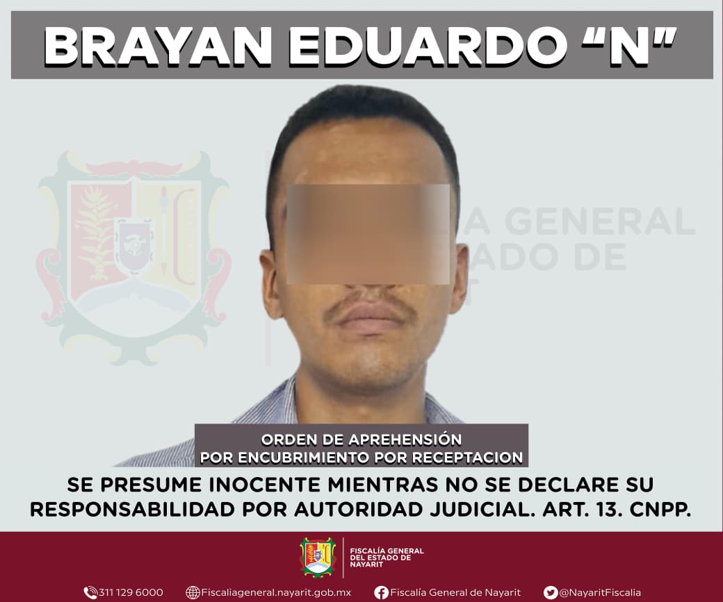 Elementos de la Agencia de Investigación Criminal de Nayarit ejecutaron una orden de aprehensión en la capital nayarita contra Brayan Eduardo “N”, por su presunta participación en hechos que la ley tipifica como delito de encubrimiento por receptación contra la sociedad.