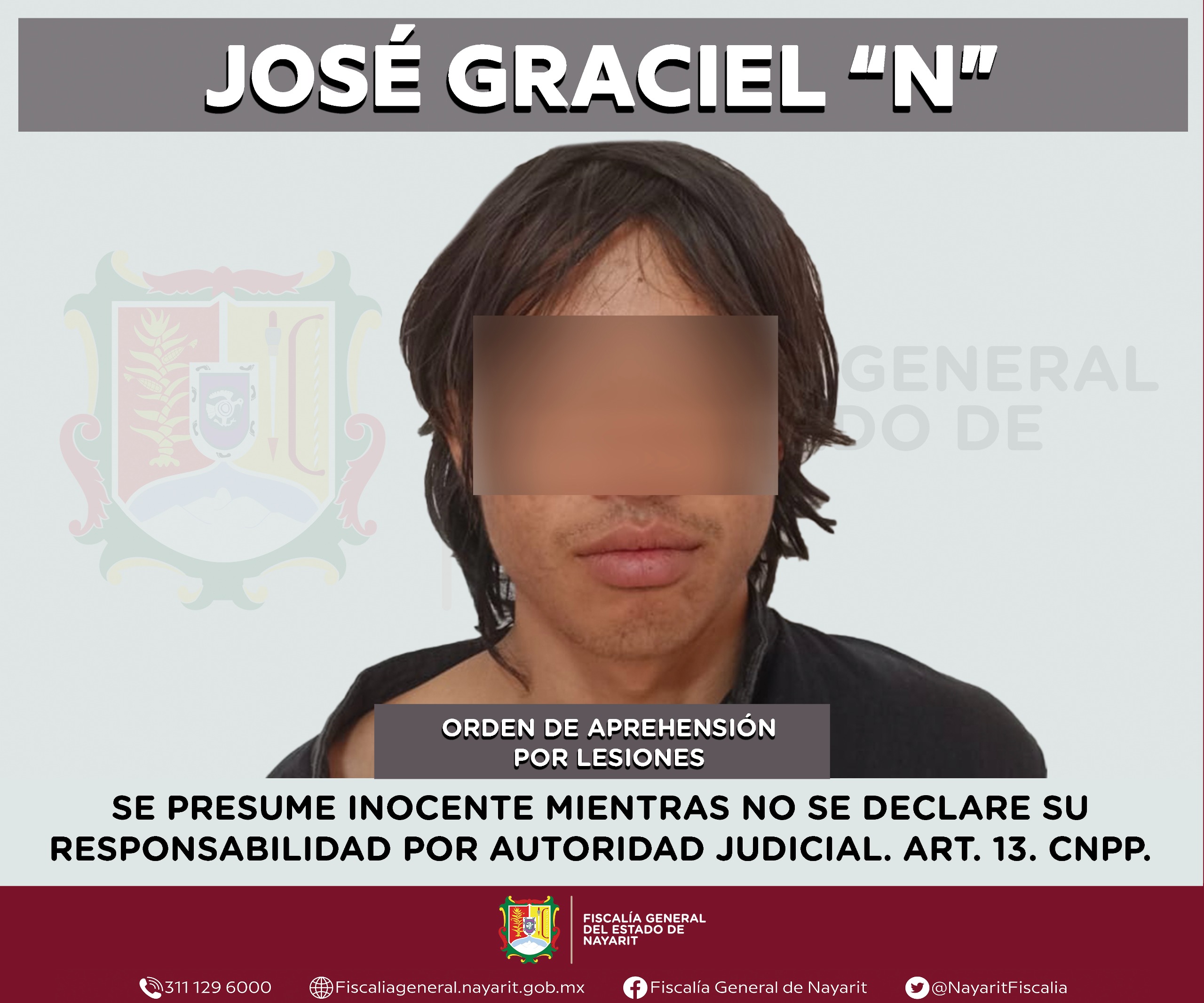 Elementos de la Agencia de Investigación Criminal de Nayarit ejecutaron una orden de aprehensión en el municipio de Ixtlán del Río contra José Graciel “N”, por su presunta participación en hechos que la ley tipifica como delito de lesiones, cometido contra un menor de edad cuya identidad se reserva para salvaguardar su privacidad e integridad.