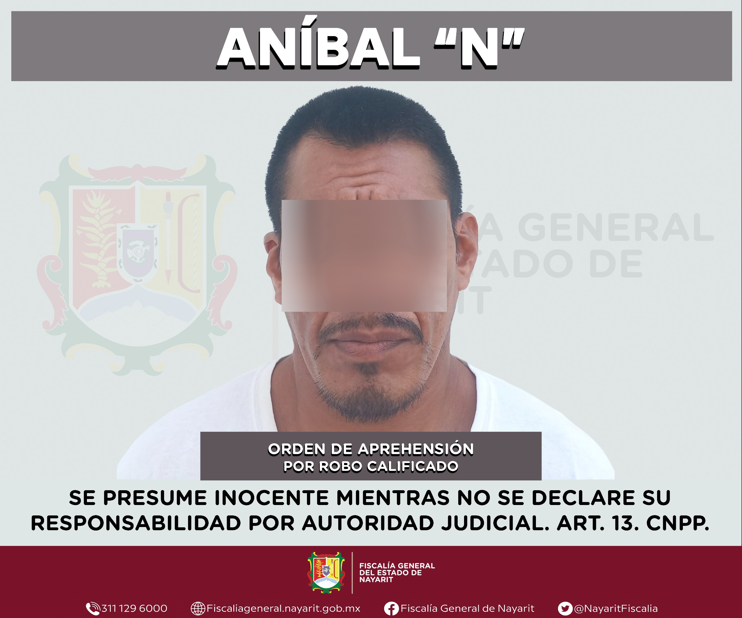 Elementos de la Agencia de Investigación Criminal de Nayarit ejecutaron una orden de aprehensión en el municipio de Bahía de Banderas contra Aníbal “N”, por su presunta participación en hechos que la ley tipifica como delito de robo calificado, cometido en agravio de una empresa inmobiliaria.