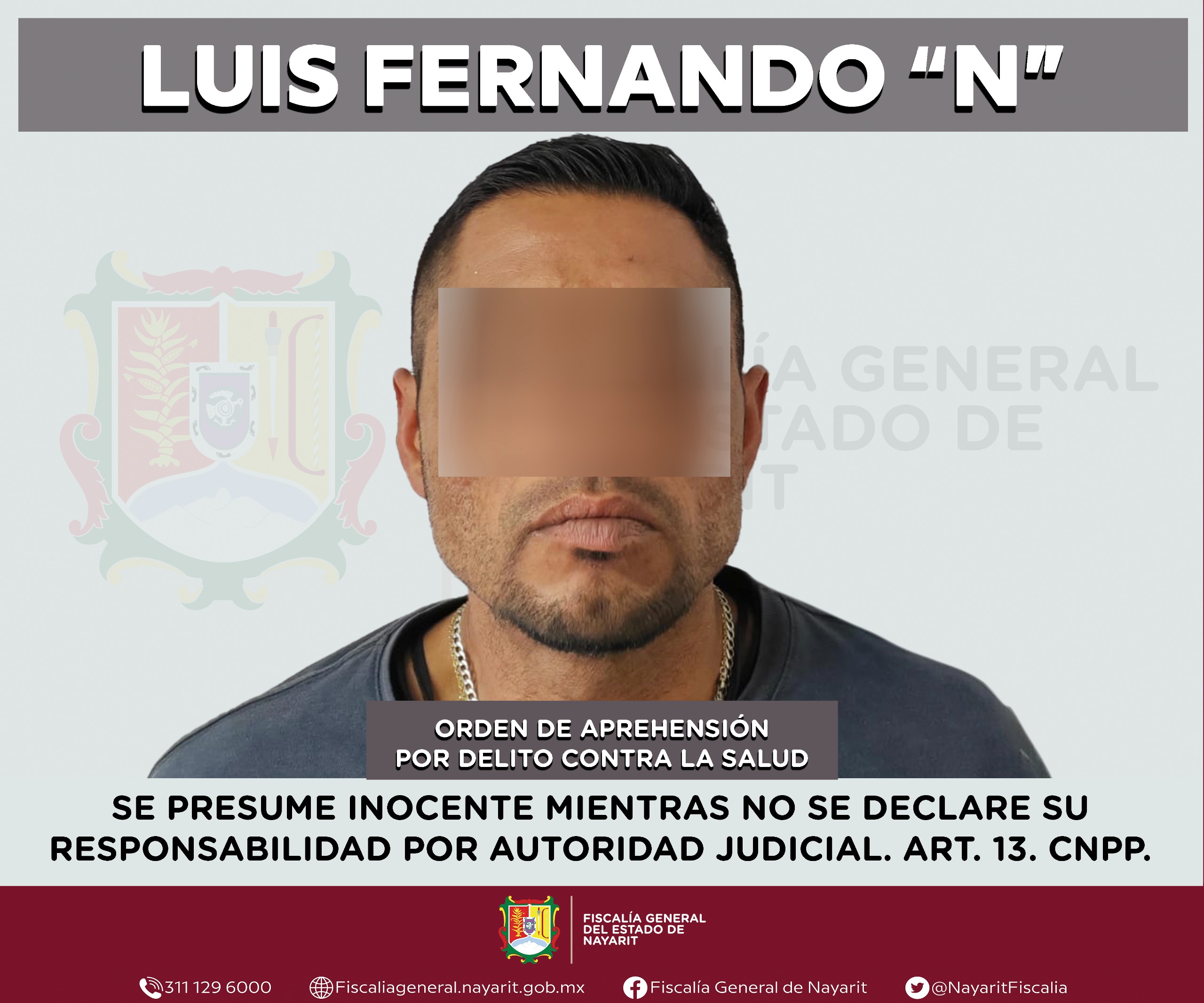 Elementos de la Agencia de Investigación Criminal de Nayarit ejecutaron una orden de aprehensión en la ciudad de Tepic contra Luis Fernando “N”, por su presunta participación en hechos que la ley tipifica como delito contra la salud en su modalidad de narcomenudeo -en su hipótesis de posesión de psicotrópicos-, cometido en agravio de la sociedad.