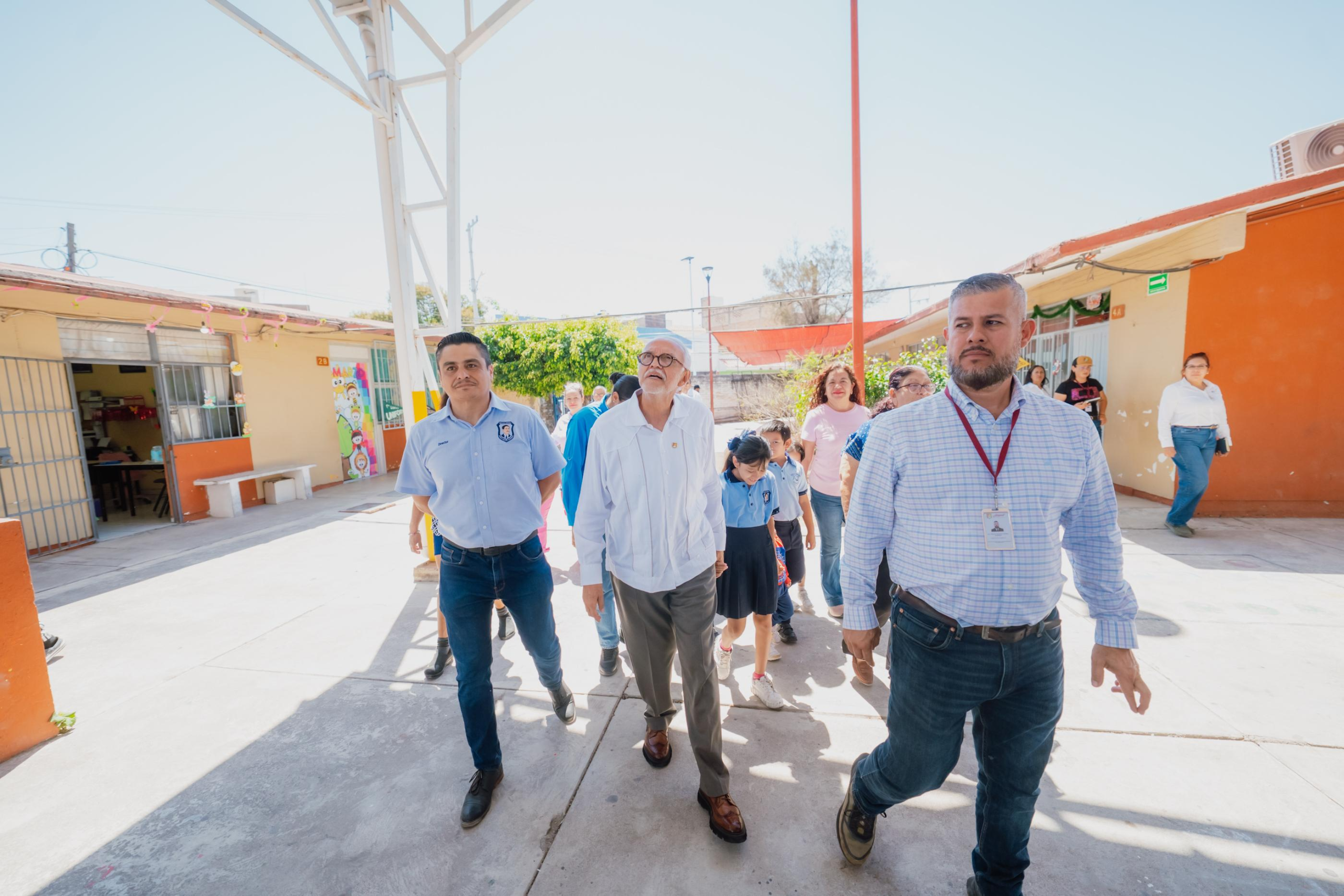El gobernador del estado, Miguel Ángel Navarro Quintero, visitó la Escuela Primaria José Santos Godínez, en Tepic, donde supervisó la construcción de un domo y la rehabilitación de la cancha de usos múltiples.