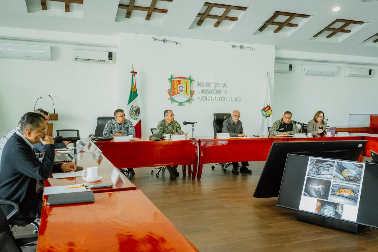 Durante la sesión, el mandatario estatal indicó que se revisaron resultados de operativos recientes en distintos municipios, que derivaron en el aseguramiento de armamento, sustancias ilícitas y vehículos, así como acciones de supervisión en el sistema penitenciario y operativos en carreteras y zonas prioritarias.