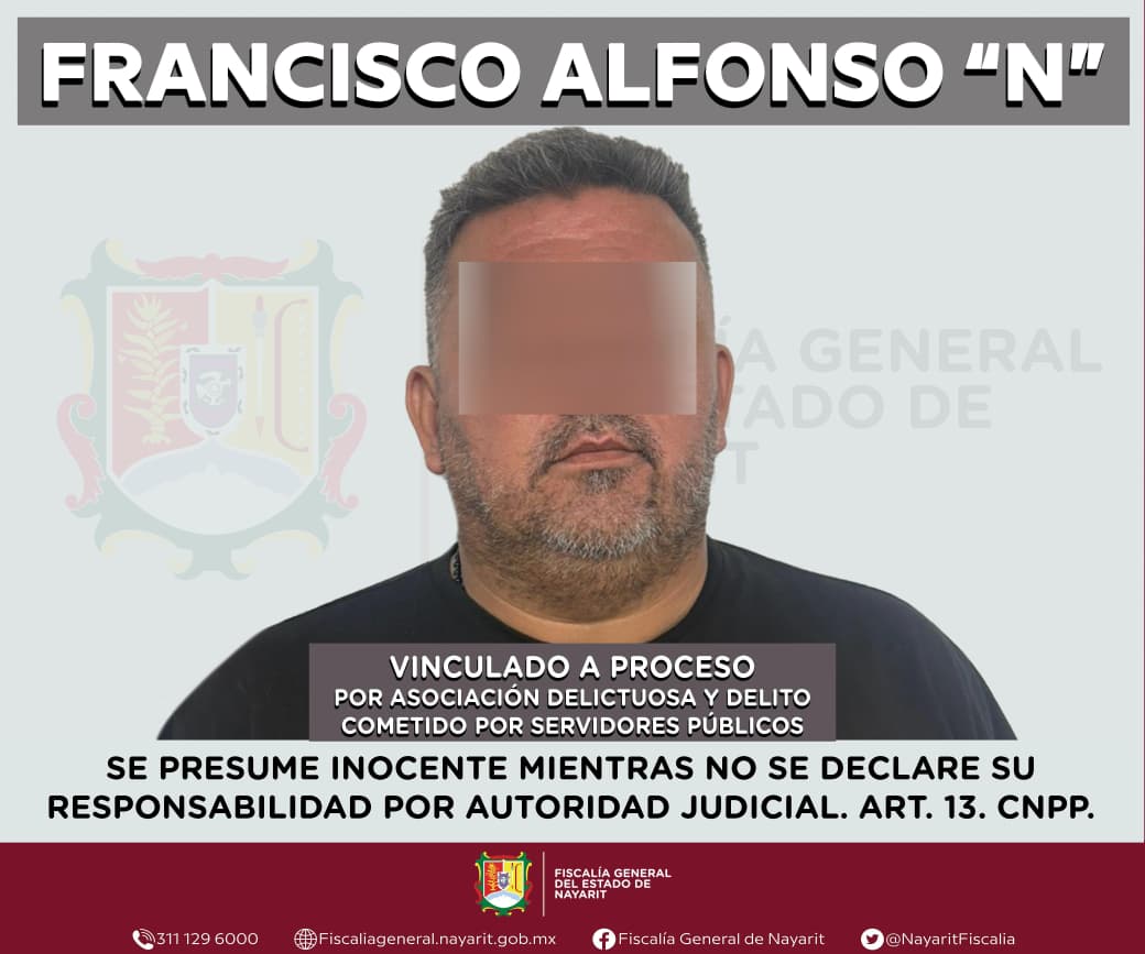 Tepic, Nayarit; 25 de marzo de 2026. – La Fiscalía General del Estado de Nayarit informa que Francisco Alfonso “N” fue vinculado a proceso por su probable responsabilidad en los delitos de asociación delictuosa y delito cometido por servidores públicos.