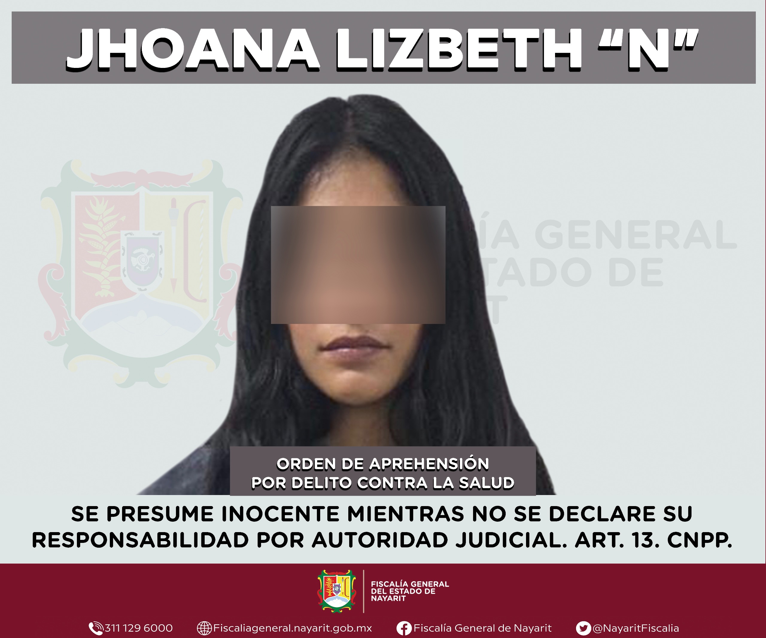 Elementos de la Agencia de Investigación Criminal de Nayarit ejecutaron una orden de aprehensión en la capital nayarita contra Johana Lizbeth “N”, por su presunta participación en hechos que la ley tipifica como delito contra la salud en la modalidad de narcomenudeo -en su hipótesis de posesión de psicotrópicos-, cometido en agravio de la sociedad.