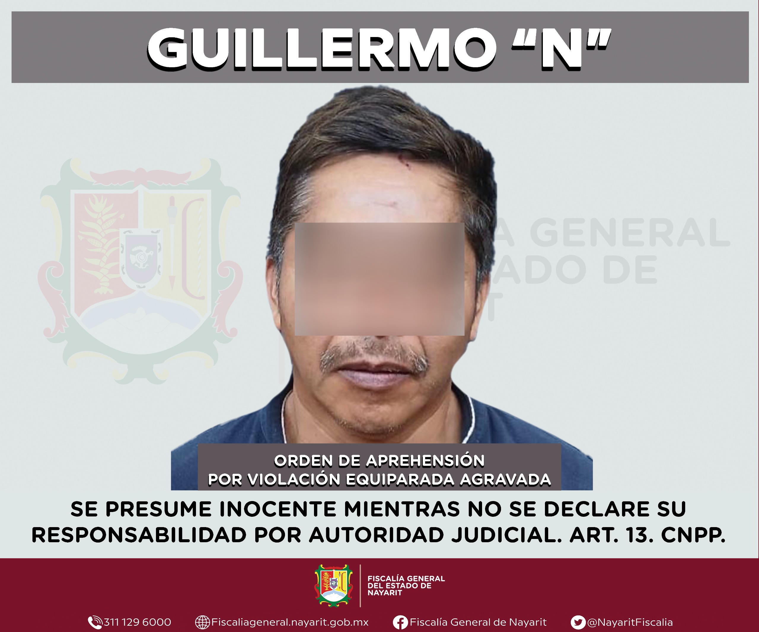 Elementos de la Agencia de Investigación Criminal de Nayarit ejecutaron una orden de aprehensión en el municipio de Santa María del Oro contra Guillermo “N”, por su presunta participación en hechos que para la ley configuran el delito de violación equiparada agravada, cometido contra una persona menor de edad de quien se reserva la identidad para salvaguardar su privacidad.