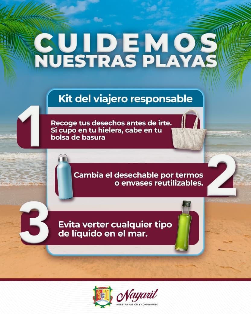 Cuidar y disfrutar de las playas y destinos turísticos es tarea de todas y todos, por ello; desde el Gobierno del Estado te invitamos a disfrutar responsablemente: recoge tu basura, utiliza envases reutilizables y evita contaminar el mar. ♻️