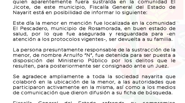 En torno del caso de la menor de iniciales “M”. “E”. “M”. “E”., quien aparentemente fuera sustraída en la comunidad El Jicote, de este...